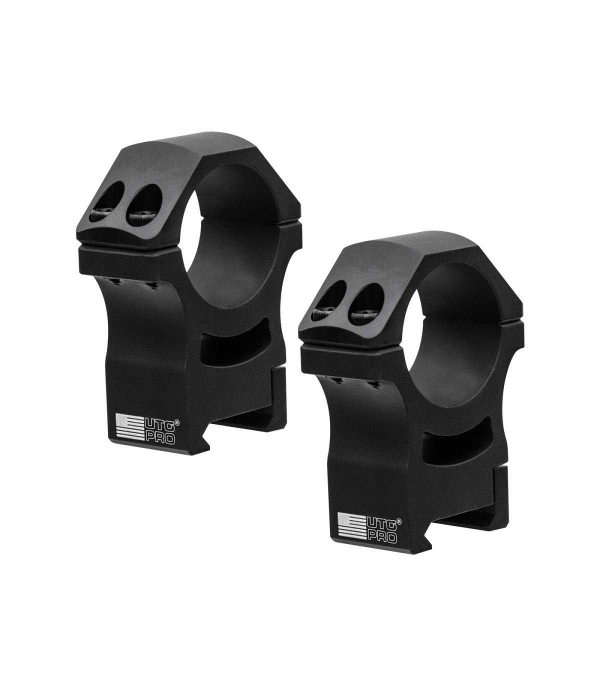 Made in the USA 30mm Picatinny scope rings High profile Precision machined, aluminum and steel construction finished with hard coat anodizing Integral squared recoil stop Low-profile torx locking slide plate with dial spring-loaded guide rods Live fire recoil repetition tested Inner ring surface is precision machined 30 mm diameter 37 mm center height 22 mm width Includes: 2 ring pieces, each equipped with 4 torx screws