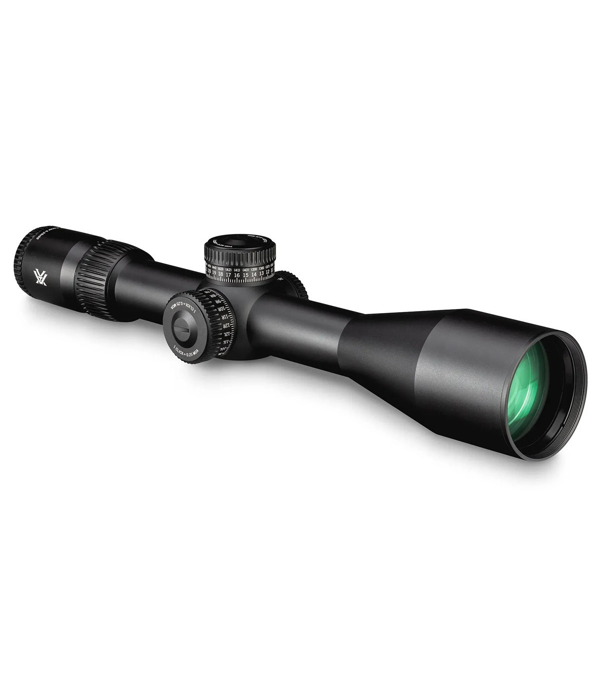 34mm aircraft-grade aluminum tube, anodized low-glare matte black finish 56mm objective lens XD optical system ArmorTek coating protects against oil, dirt, and scratches Exposed locking turrets RevStop Zero System Elevation turret includes external rotation indicator 5-25X magnification system Eye relief: 3.6" Field of view: 21.2'-4.7' @ 100yds. Elevation range: 25 MRAD, in 1/10 MRAD increments Windage range: 25 MRAD, in 1/10 MRAD increments 10 MRAD per turret revolution Parallax: 15 yards to infinity EBR-7C laser-etched MRAD FFP reticle Fast-focus eyepiece Fogproof, shockproof Nitrogen purged, O-ring sealed Includes sunshade, lens cloth, throw lever, lens covers, 2mm hex wrench Length: 15.3" Weight: 35oz VIP Warranty, unlimited, lifetime, transferable