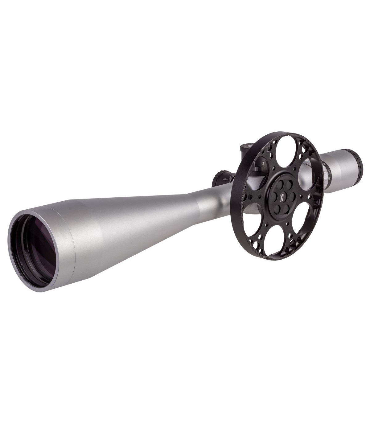 Silver Cerakote Finish SFP MOA200 reticle 30mm tube 60mm objective lens Screw-on sunshade included 1/8 MOA click value FT Parallax 9>300m 16x marking on magnification ring for US Hunter Field Target Field of view @ 100m: 9.84 ft. - 2.32 ft. Eye relief: 4.5 in. - 3.8 in. Length: 16.89 in. Weight: 1.87 lb. Made in Japan Includes 125mm Side Parallax Ranging Wheel