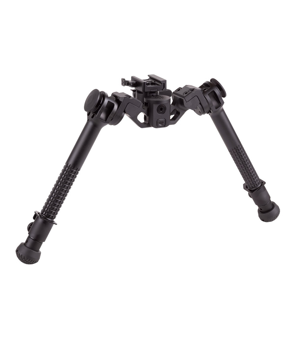 Picatinny Mount Quick detach Requires 3" of rail space 14 extendable positions Leg extension increment: .38" 3-position foldable: 0, 45, and 90 degrees 8" - 12" Width: 14.69" Center height stowed: 2.07" Locking lever Constructed from 6061 T6 aluminum and steel Anodized Tension adjustable panning, 28 degrees Tension adjustable tilting, 40 degrees Open angle: 60 degrees Oversized rubber feet Includes: T15 Torx, 3mm Hex wrenches
