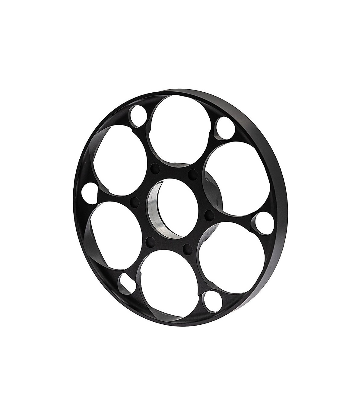 6082 T6 aluminum Finish: Anodised matte black Diameter: 125mm (4.92") Fits all T50i scope modelsFalcon Optics 125mm Side Parallax Ranging Wheel For T50i